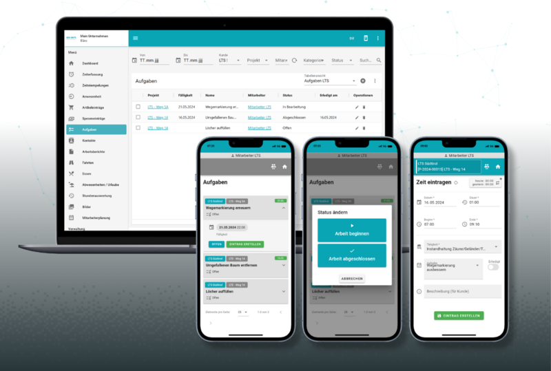 Mithilfe der TikTak-App können Ihre Mitarbeiter bequem über Smartphone, Tablet oder PC ihre geleisteten Stunden erfassen, egal ob unterwegs bei der Pflege der Wanderwege oder bei den unterschiedlichsten Projekten.