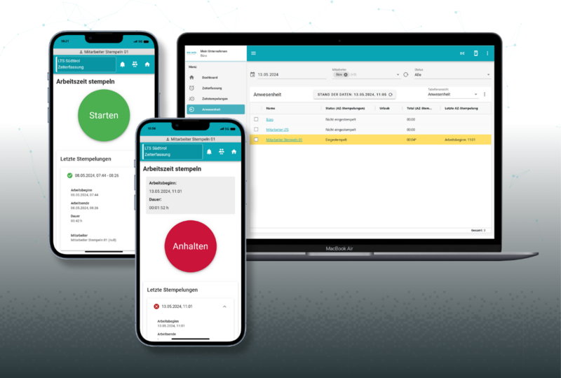 Der Vorteil: Sie haben die Kontrolle über alle Zeiten in einem Verwaltungsbereich und können pro Mitarbeiter entscheiden, ob Zeiten erfasst oder gestempelt werden müssen - das ganze natürlich hybrid zwischen Stempeluhr und App
