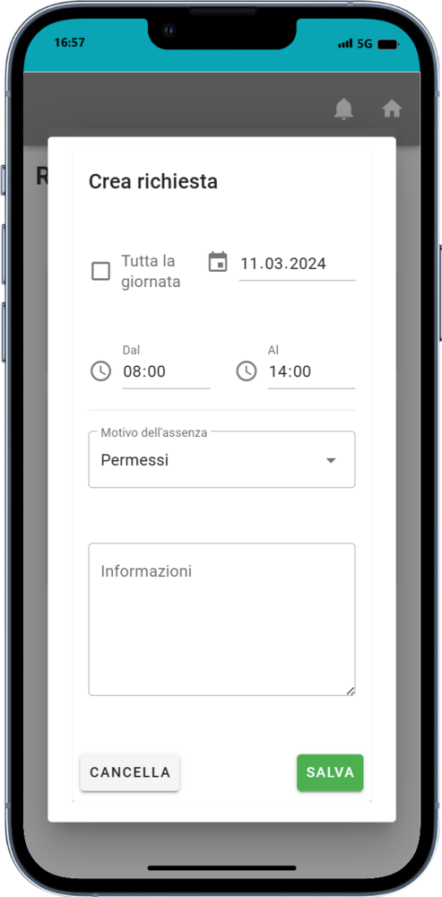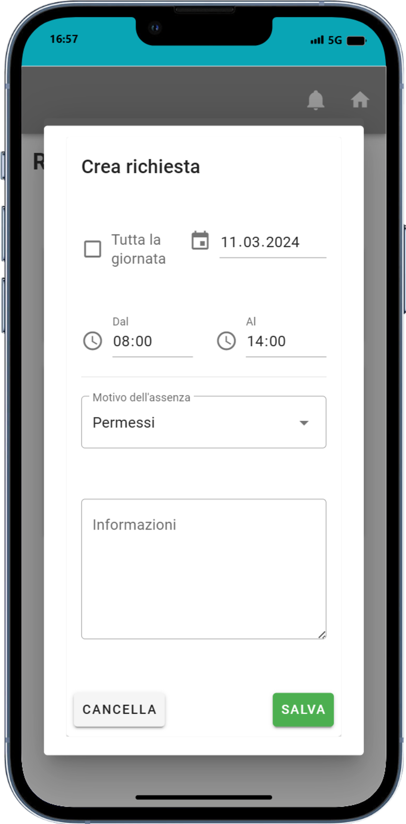 Con l'app TikTak, i vostri dipendenti potranno facilmente presentare una richiesta di assenza tramite smartphone, tablet o PC.