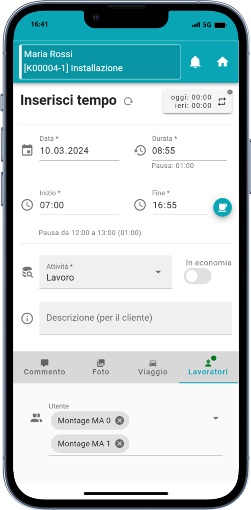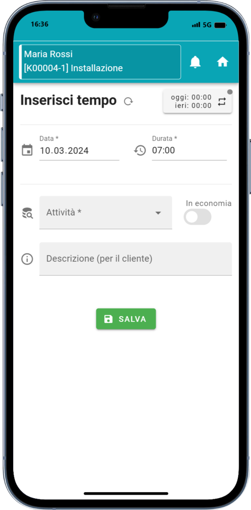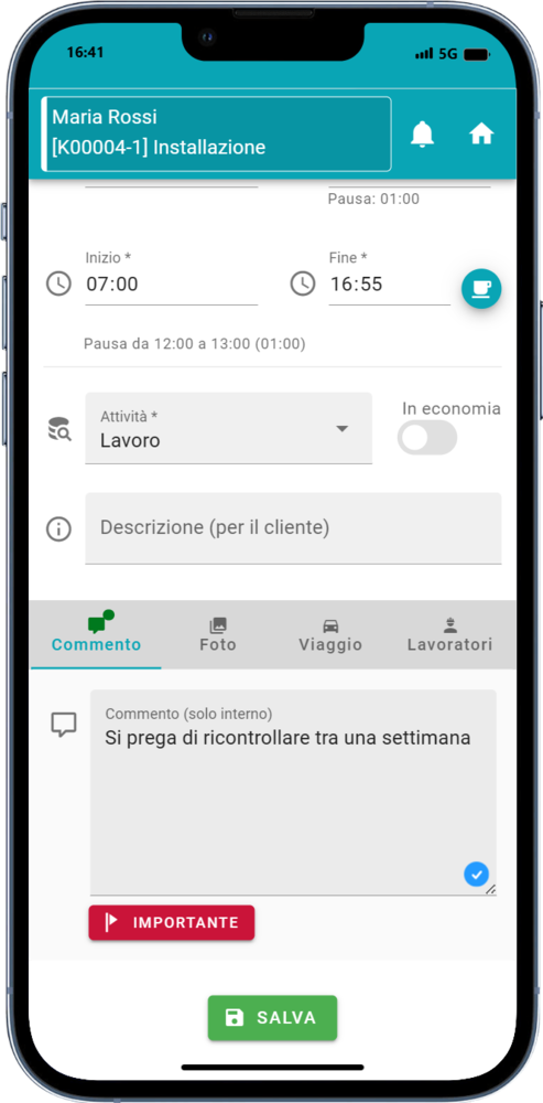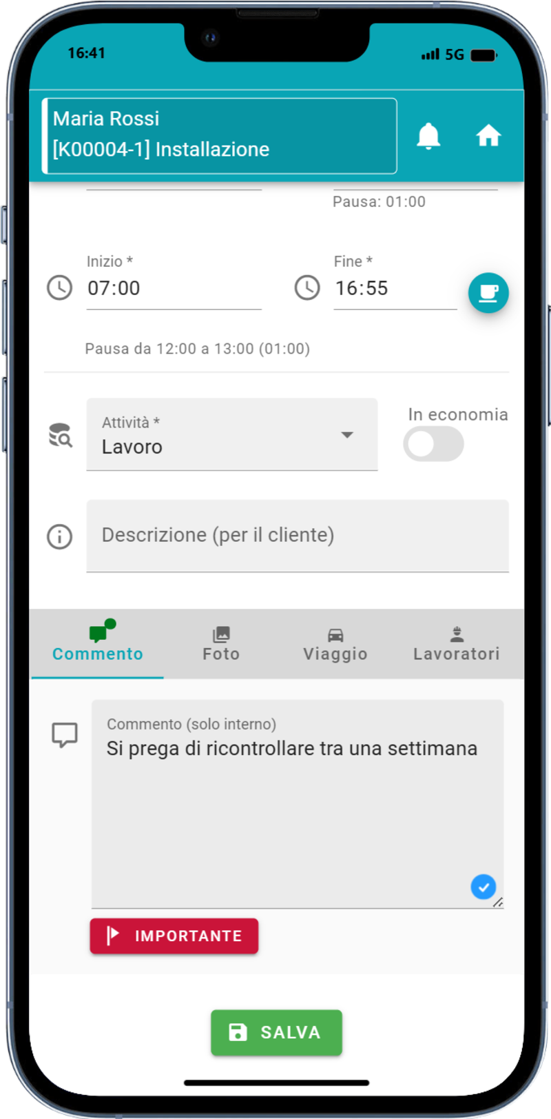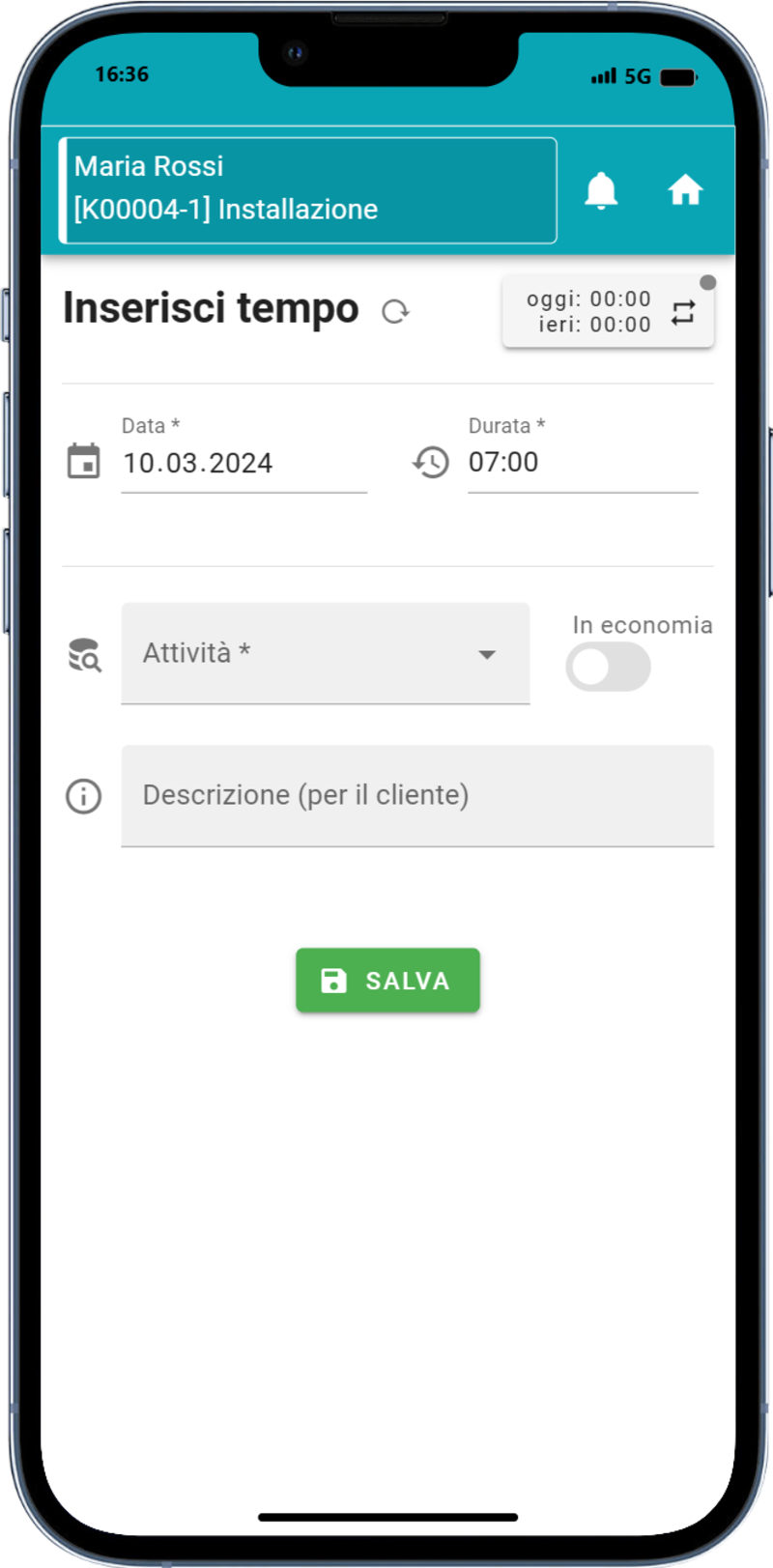 - funzione start-stop - Le ore lavorate vengono rilevate in automatico, con contestuale geolocalizzazione
