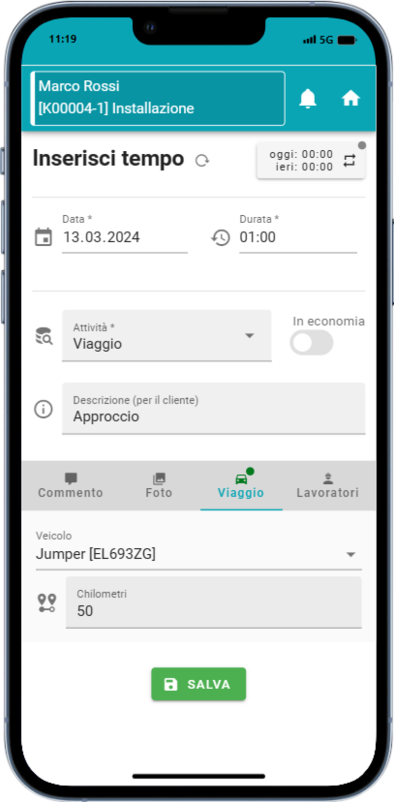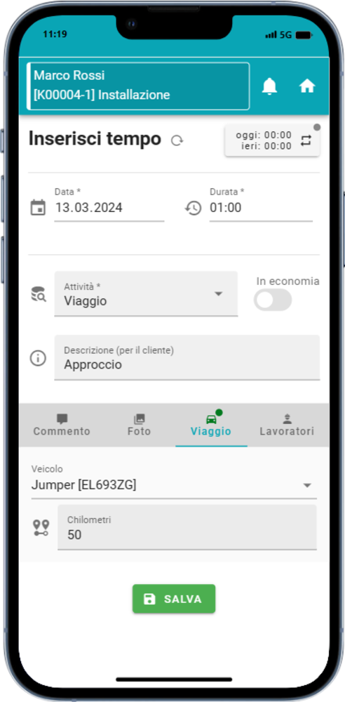 Selezionate un veicolo e inserite direttamente un viaggio. I chilometri percorsi potranno essere memorizzati nel progetto o inseriti/corretti manualmente.