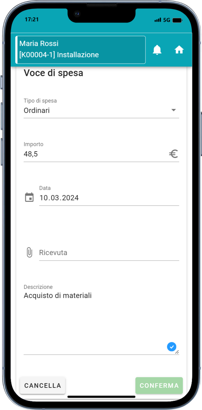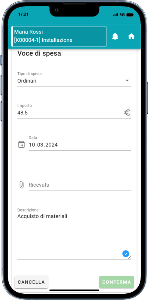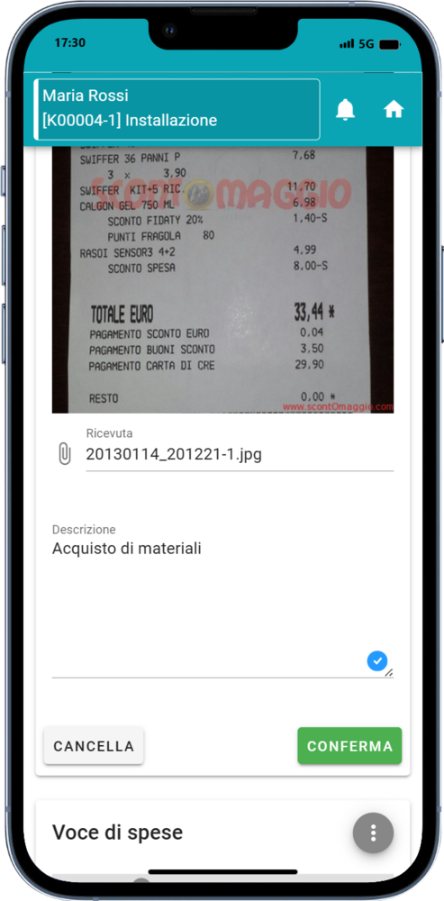 Il punto forte: il dipendente scatta una foto dello scontrino e l'intelligenza artificiale inserisce automaticamente i dati nella gestione. È possibile memorizzare diversi tipi di spese e quindi documentarle fotograficamente.