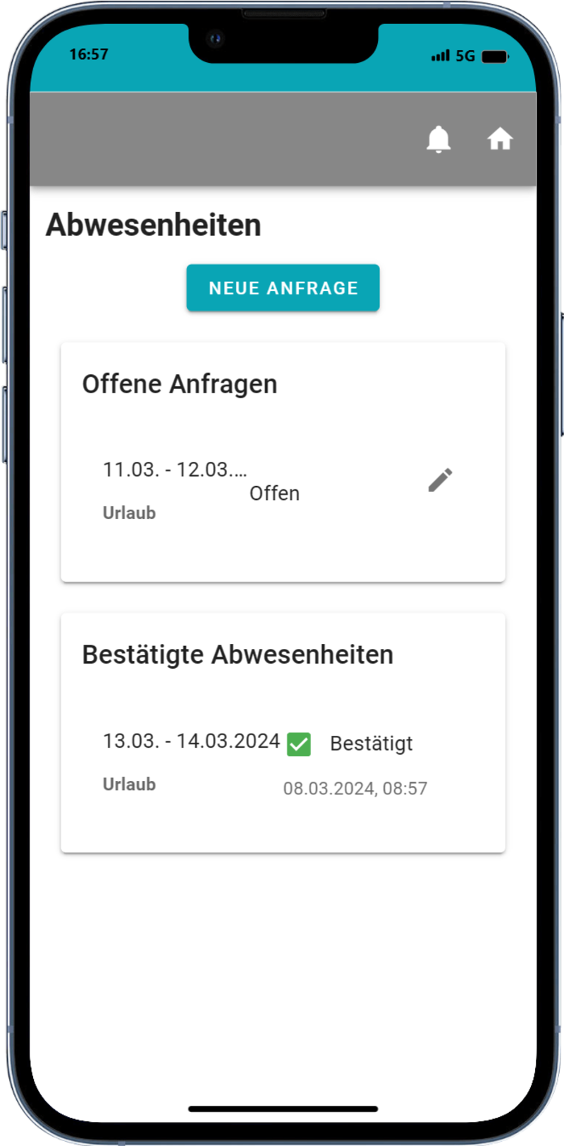 Der Zuständige wird per Mail informiert, kann die Anfragen im Backend einsehen & bestätigen. Somit haben sowohl Sie als auch Ihre Mitarbeiter alles im Überblick.
