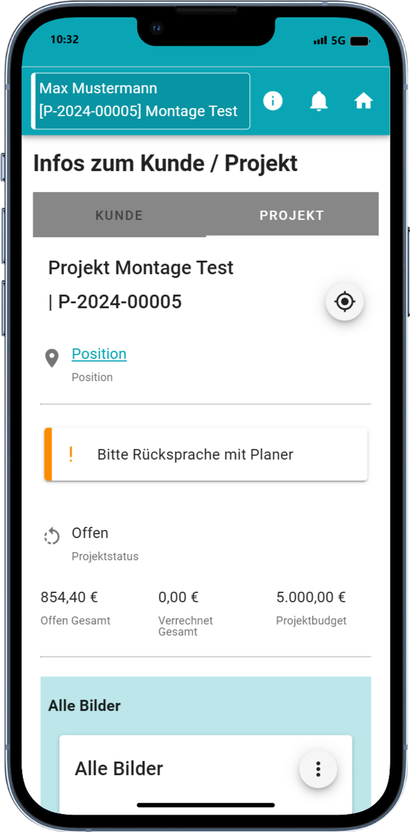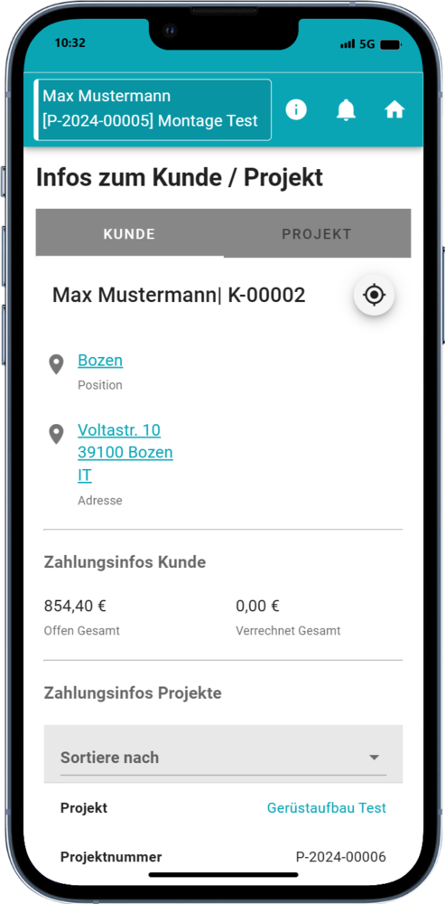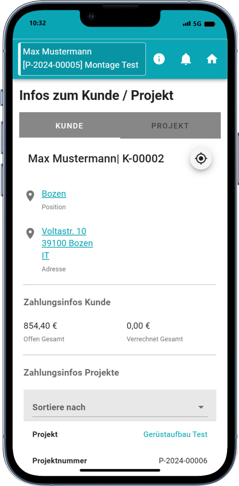 Mit der TikTak-App können Sie und Ihre Mitarbeiter bequem via Smartphone, Tablet oder PC den aktuellen Stand zu den Projekten einsehen und Informationen zum Kunden abrufen.