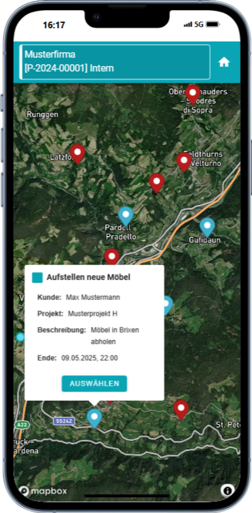 Mit der Kartenansicht alle Aufgaben im Blick – jederzeit, überall.