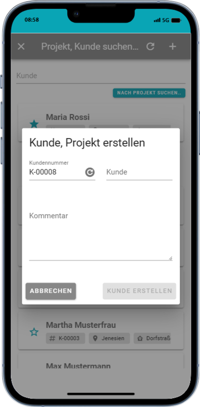 Mit der TikTak-App können Sie bequem via Smartphone, Tablet oder PC Kunden und Projekte verwalten. Je nach Bedarf werden die Daten automatisch importiert, oder Sie legen diese manuell an.