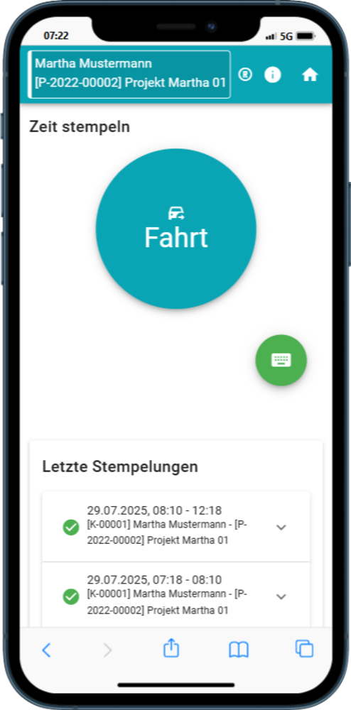 Projektzeiten online mittels App oder Terminal erfassen